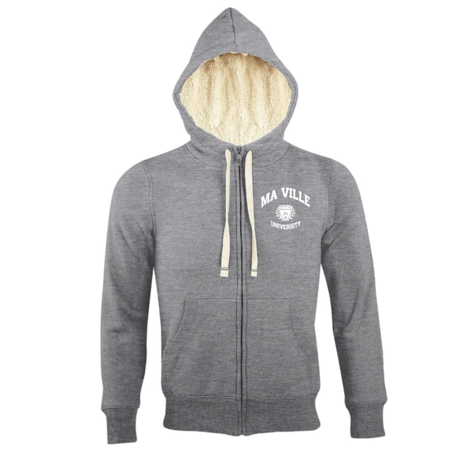 This unisex Sherpa jacket is perfect for winter days or cooler evenings, offering optimal comfort without sacrificing style. It can also be personalized with the name of your favorite city, allowing you to proudly show your allegiance.