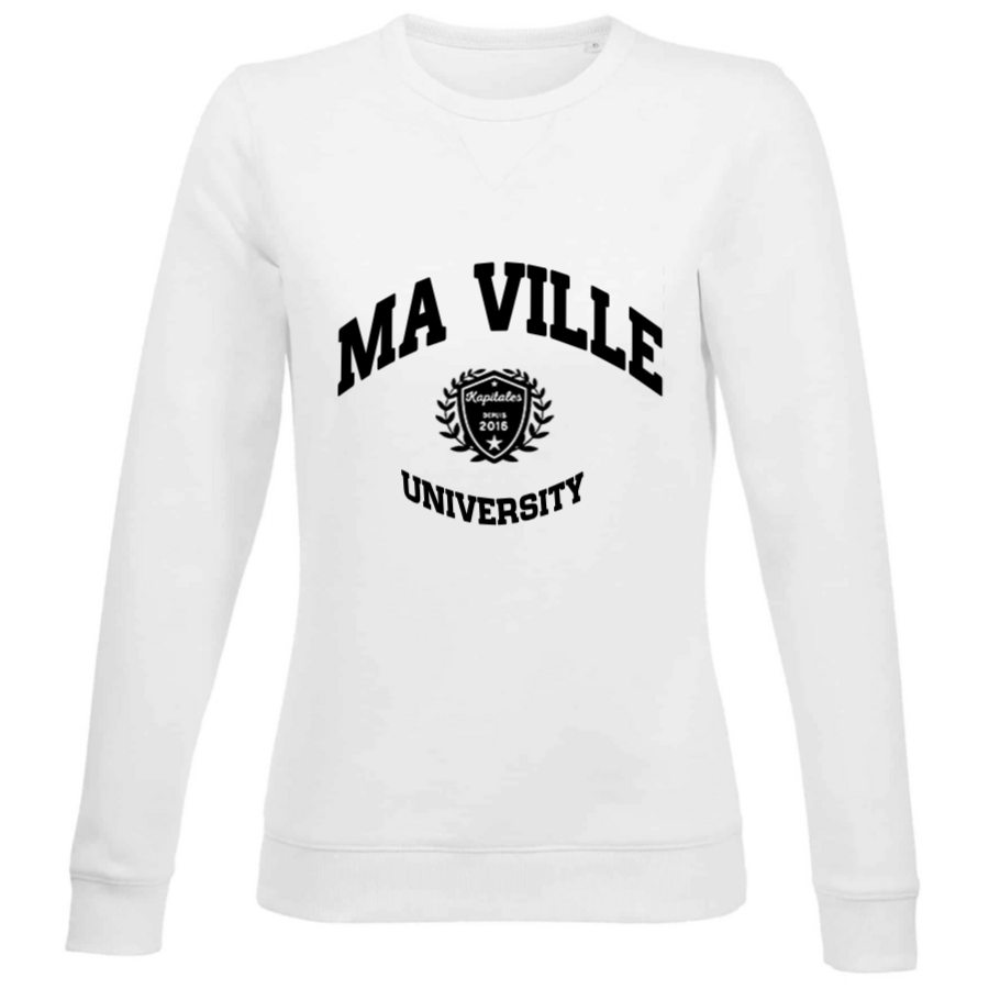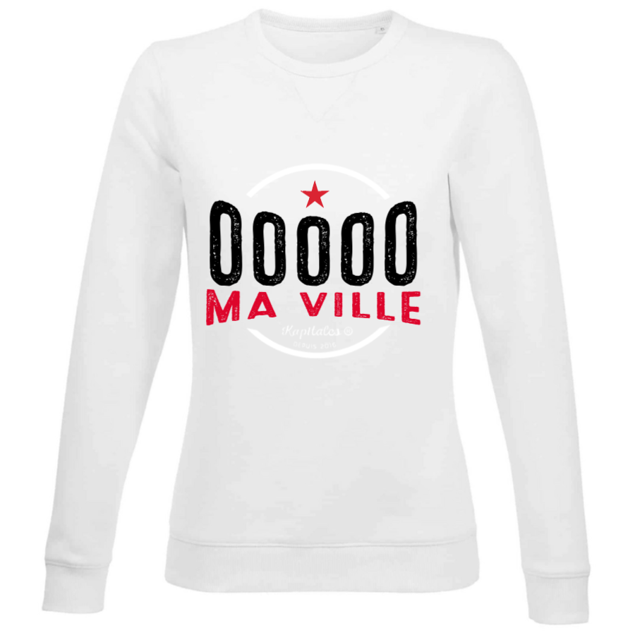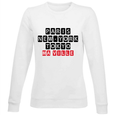 Choose our women's crew neck sweatshirt, an essential basic that combines comfort and casual elegance. Designed and printed in France, this sweatshirt is perfect for everyday wear, whether you're relaxing at home or heading out for a casual outing. Its feminine cut and timeless crew neck make it as trendy as it is comfortable. Add a personal touch by customizing it with the name of your favorite city.