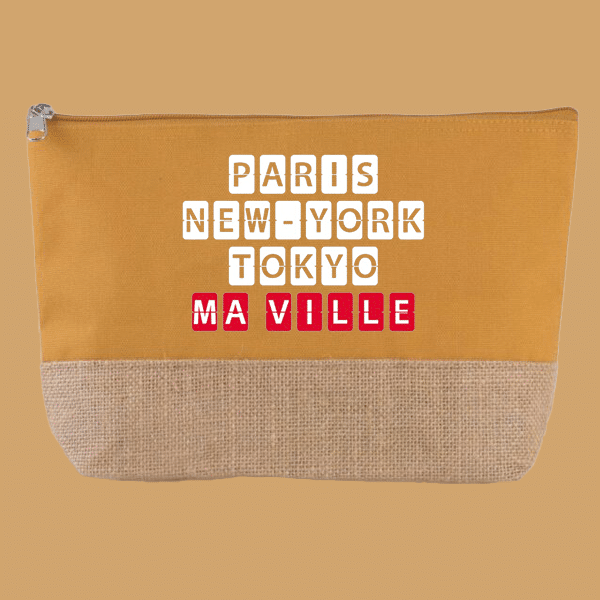 Pratique et élégante, notre Trousse Coton et Jute personnalisée est un indispensable pour organiser vos affaires avec style. En coton et de toile de jute, elle allie durabilité et charme naturel. Personnalisez-la avec le nom de votre ville préférée ou tout autre texte pour en faire un accessoire unique. Elle est dotée d'une fermeture zippée et mesure 27 x 5 x 18 cm, idéale pour ranger vos petits objets du quotidien comme vos produits de beauté ou fournitures de bureau.