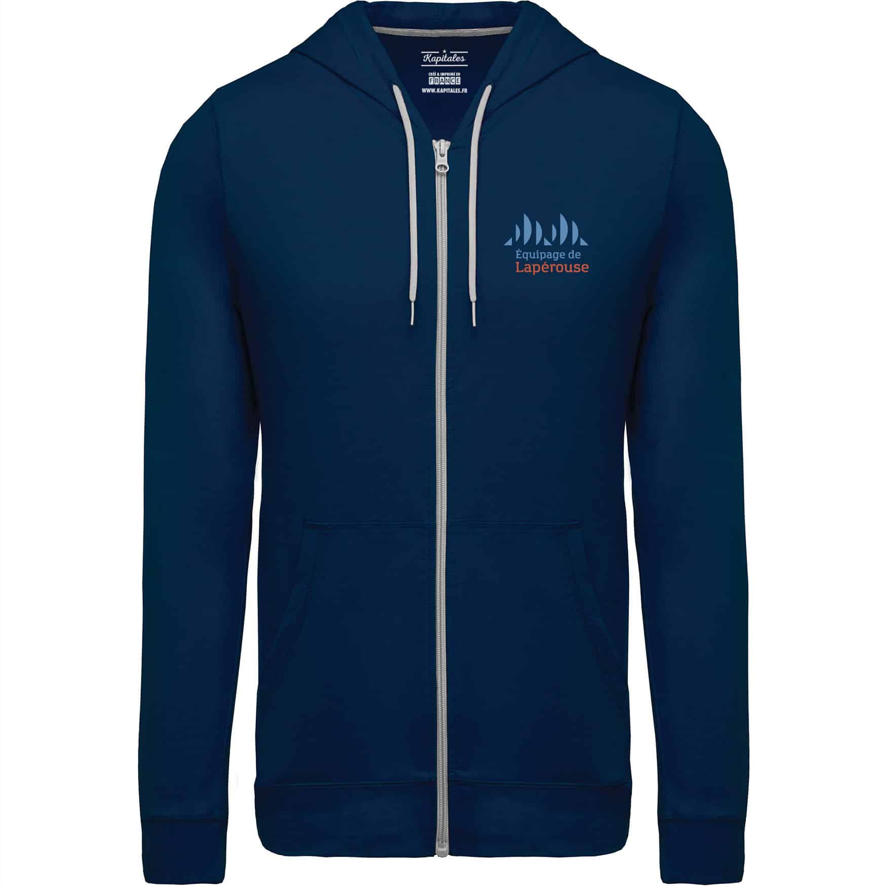 Optez pour notre veste zippée mixte Equipage de Lapérouse, un essentiel intemporel qui combine élégance et confort. Créée et imprimée en France, cette veste est parfaite pour toutes les saisons et toutes les occasions. Que ce soit pour un look décontracté ou pour apporter une touche moderne à vos tenues, elle s'adapte à tous les styles.