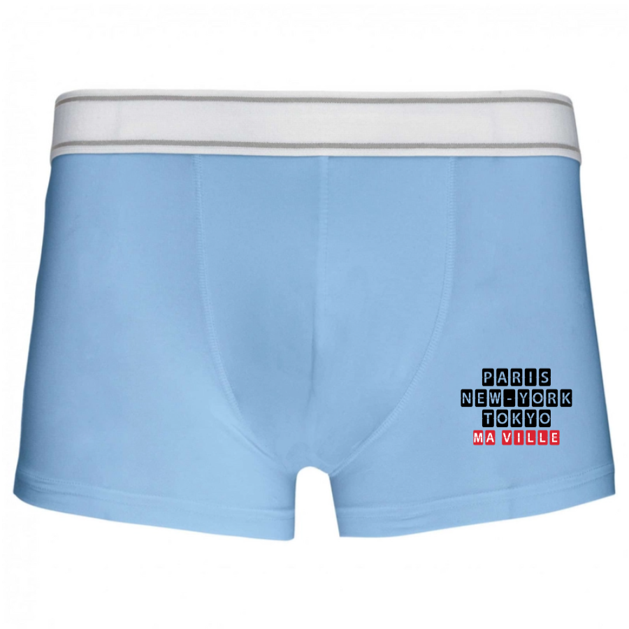 Ce boxer homme est l'allié parfait pour garantir confort et style sous toutes vos tenues. Grâce à sa matière respirante et son design ajusté, il vous offre un maintien optimal tout en étant agréable à porter. Que ce soit pour une journée active ou une soirée relaxante, ce boxer s'adapte à toutes les situations. En plus, sa personnalisation vous permet d'ajouter le nom de votre ville pour une touche unique.