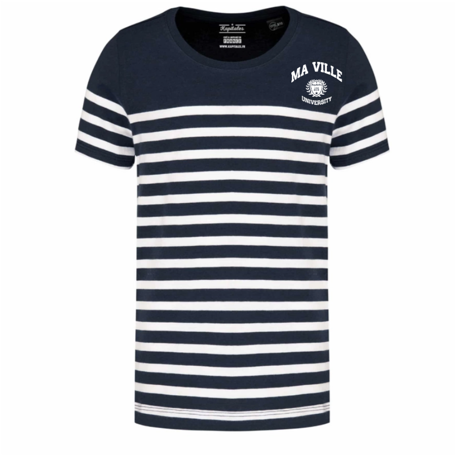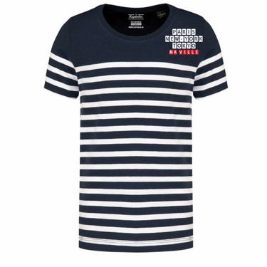 • Design : Rayures classiques en bleu marine et blanc, avec des finitions soignées pour un style élégant et une coupe confortable