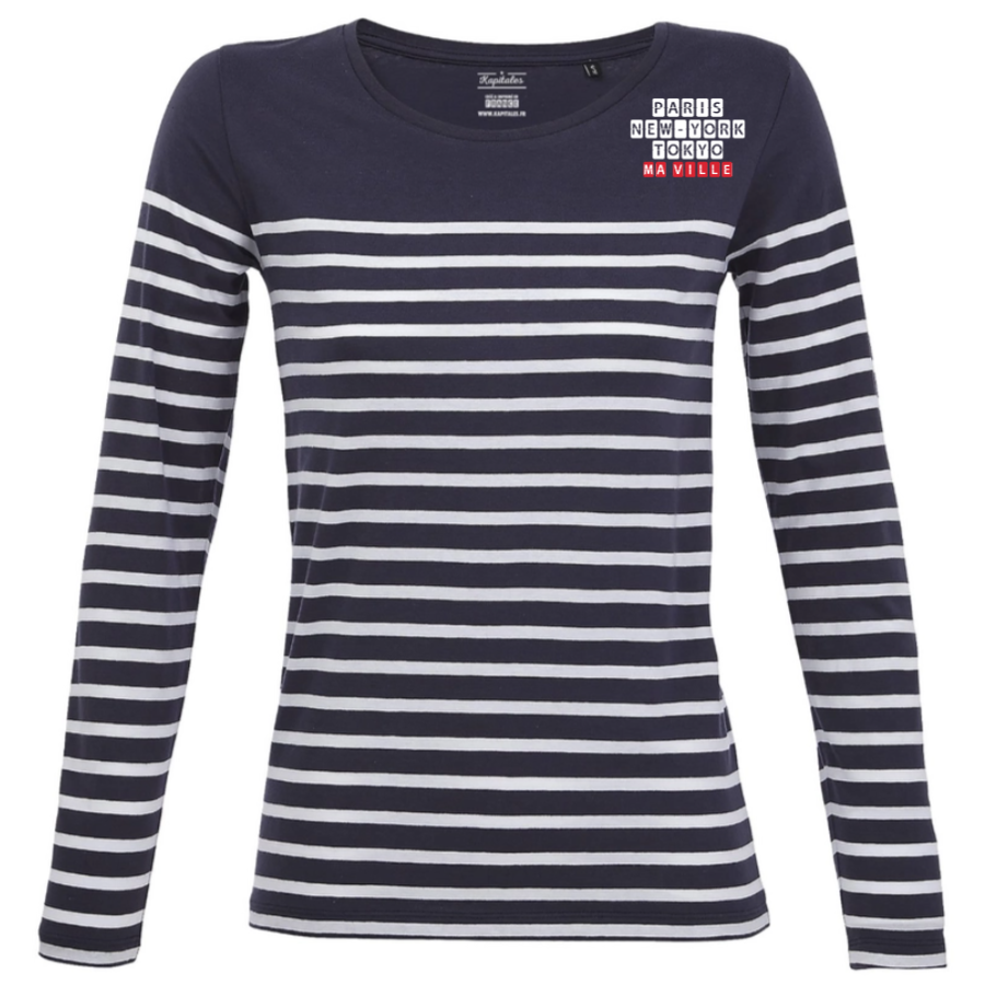 Icône de la mode française, la marinière à manches longues est idéale pour celles qui recherchent un style à la fois classique et tendance. Que vous souhaitiez l'associer à un jean pour un look décontracté ou à une jupe pour une allure plus sophistiquée, cette marinière s'adapte à toutes vos envies. En plus d'être un basique incontournable, elle peut être personnalisée avec le nom de votre ville, rendant chaque pièce unique et spéciale.