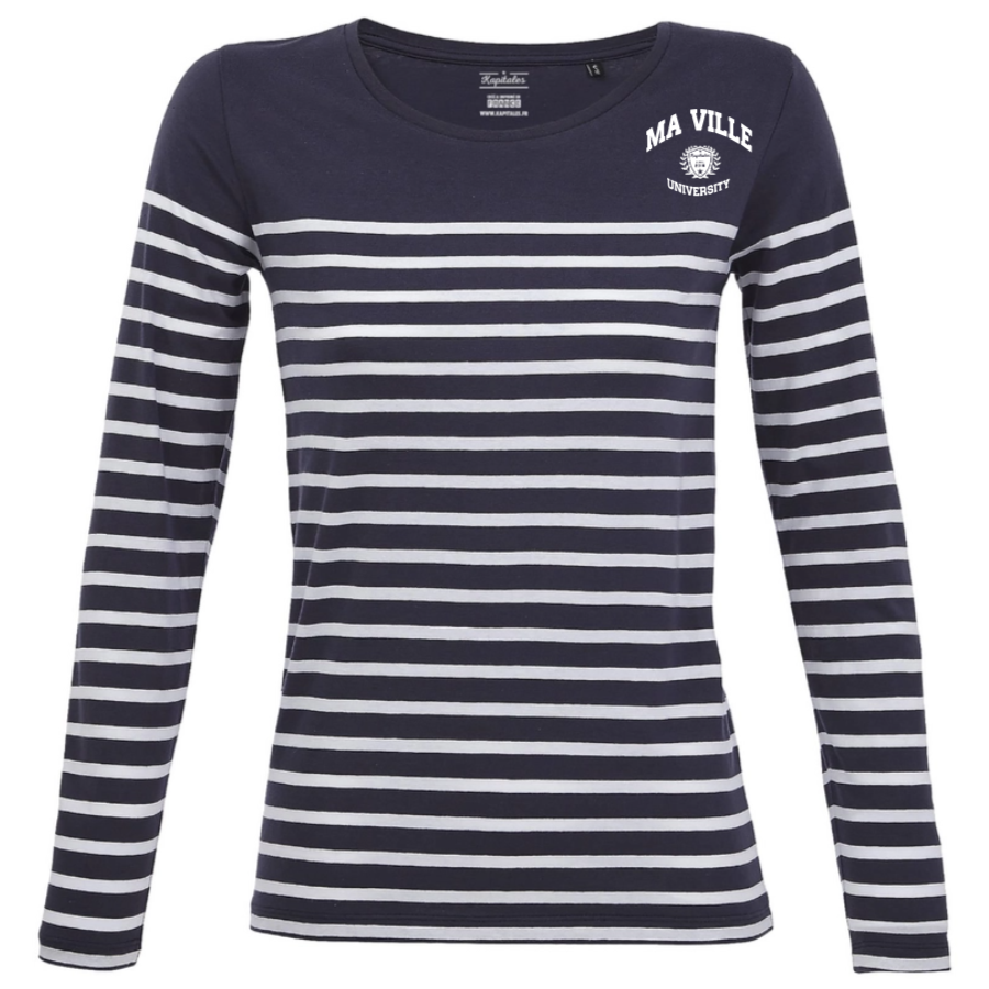 Découvrez notre marinière à manches longues pour femme, un classique de la mode qui ne se démode jamais. Créée et imprimée en France, cette pièce emblématique de la garde-robe française allie confort, style et personnalisation. Avec sa coupe ajustée et ses rayures intemporelles, elle s'adapte à toutes les occasions, des journées décontractées aux moments plus élégants.