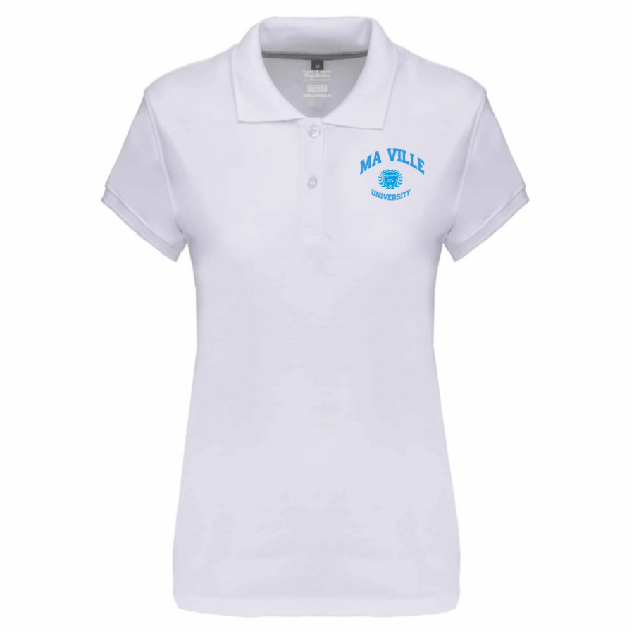Notre polo femme est un basique chic et intemporel, parfait pour toutes les occasions. Que ce soit pour un look décontracté ou plus habillé, il s'adapte à tous les styles et vous assure un confort optimal tout au long de la journée. La personnalisation avec le nom de votre ville vous permet de rendre cette pièce vraiment unique, tout en soutenant une production locale et écoresponsable. Léger et respirant, ce polo est idéal pour toutes les saisons.