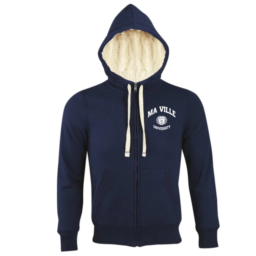 Ce Sherpa mixte est parfait pour les journées d'hiver ou les soirées plus fraîches, offrant un confort optimal sans sacrifier le style. Il est également personnalisable avec le nom de votre ville de cœur, vous permettant de porter fièrement votre appartenance.