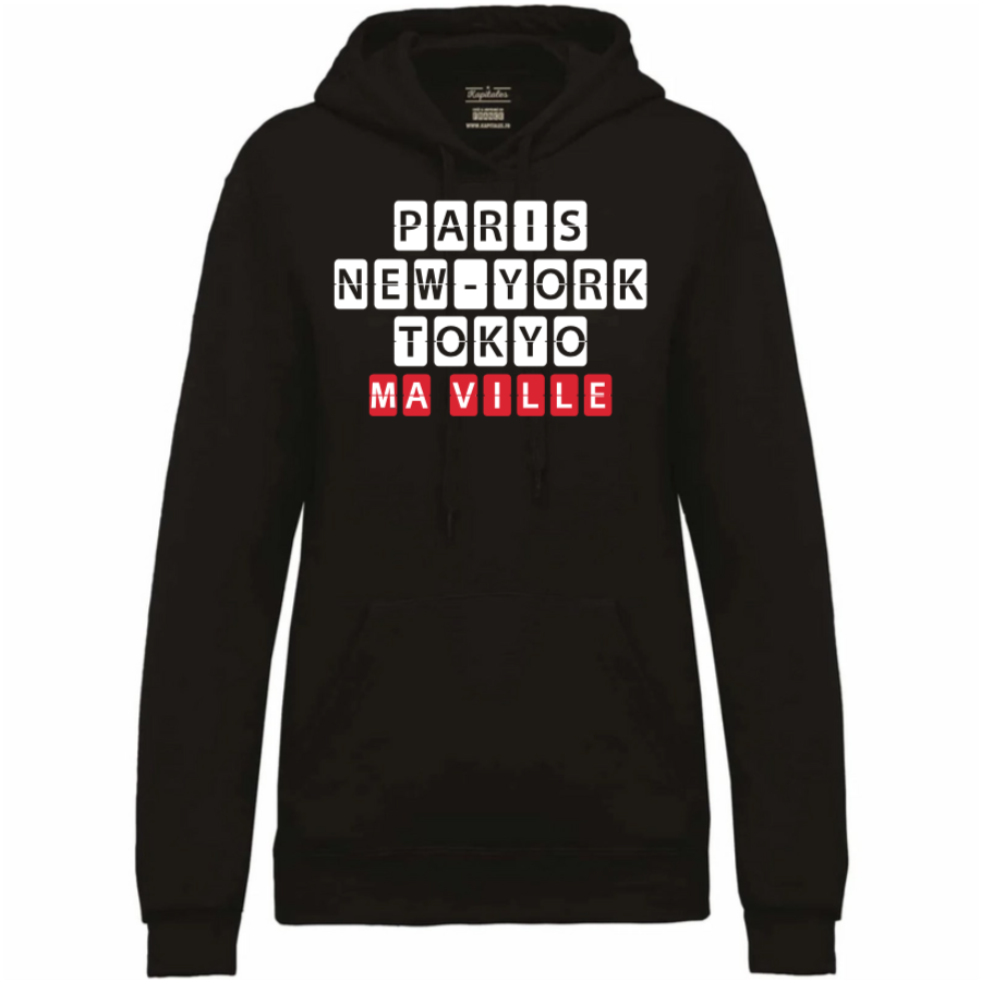 Notre sweat à capuche femme est un vêtement incontournable pour les femmes en quête de confort sans faire de compromis sur le style. Idéal pour vos moments de détente ou vos sorties, il se distingue par sa personnalisation avec le nom de votre ville de cœur, vous permettant d'afficher fièrement votre appartenance.