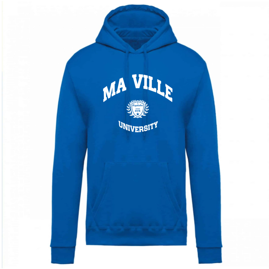 • Personnalisation : Ajoutez le nom de votre ville ou un message personnalisé pour rendre votre sweat unique