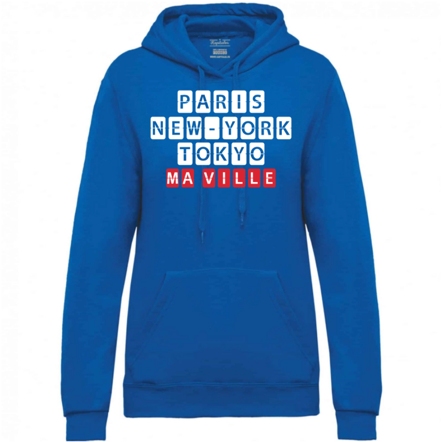 Notre sweat à capuche femme est un vêtement incontournable pour les femmes en quête de confort sans faire de compromis sur le style. Idéal pour vos moments de détente ou vos sorties, il se distingue par sa personnalisation avec le nom de votre ville de cœur, vous permettant d'afficher fièrement votre appartenance.