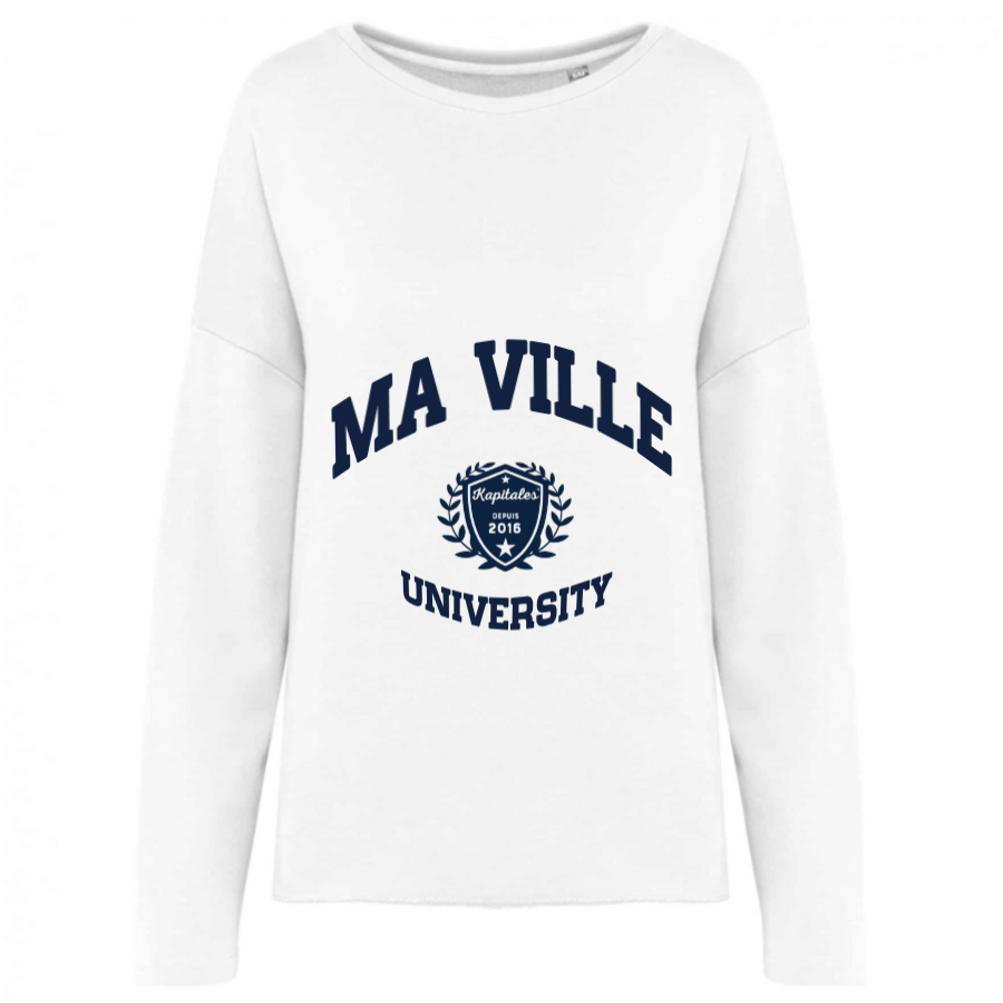 Le sweat ample femme est idéal pour celles qui aiment le style décontracté tout en restant tendance. Sa coupe ample vous permet de bouger librement tout en offrant un confort incomparable. Parfait pour vos moments de détente ou vos sorties, il peut être personnalisé avec le nom de votre ville, ajoutant une touche unique à votre garde-robe. Ce vêtement, à la fois responsable et stylé, est un allié pour un look casual-chic véritable au quotidien.