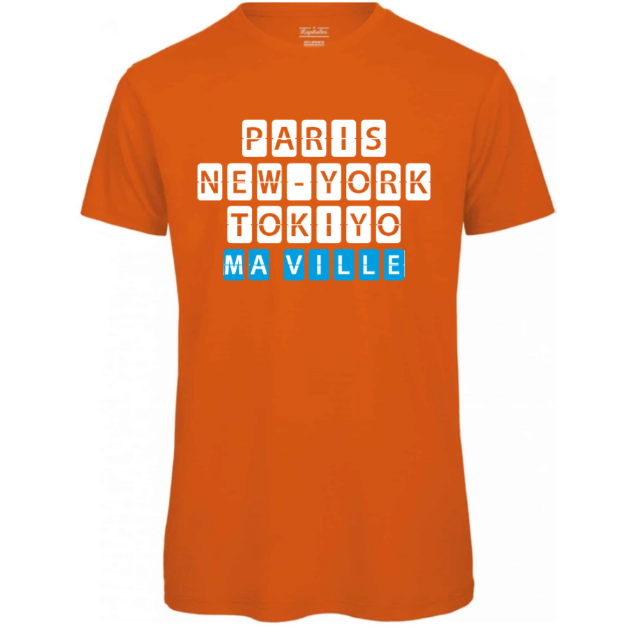 Optez pour notre t-shirt homme bio, créé et imprimé en France. Ce t-shirt est en coton biologique certifié GOTS, garantissant douceur et respect de la planète. Sa coupe classique et polyvalente en fait un essentiel de votre garde-robe, tandis que la possibilité de le personnaliser avec le nom de votre ville en fait une pièce unique et personnelle.