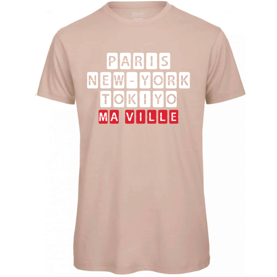 Optez pour notre t-shirt homme bio, créé et imprimé en France. Ce t-shirt est en coton biologique certifié GOTS, garantissant douceur et respect de la planète. Sa coupe classique et polyvalente en fait un essentiel de votre garde-robe, tandis que la possibilité de le personnaliser avec le nom de votre ville en fait une pièce unique et personnelle.