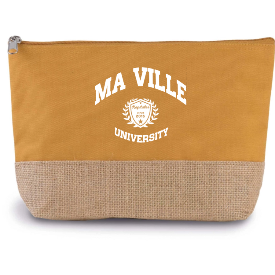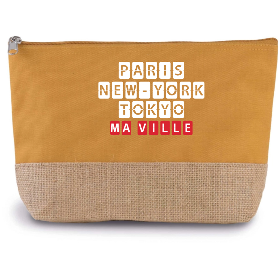 Pratique et élégante, notre Trousse Coton et Jute personnalisée est un indispensable pour organiser vos affaires avec style. En coton et en toile de jute, elle allie durabilité et charme naturel. Personnalisez-la avec le nom de votre ville préférée ou tout autre texte pour en faire un accessoire unique. Elle est dotée d'une fermeture zippée et mesure 27 x 5 x 18 cm, idéale pour ranger vos petits objets du quotidien comme vos produits de beauté ou fournitures de bureau.