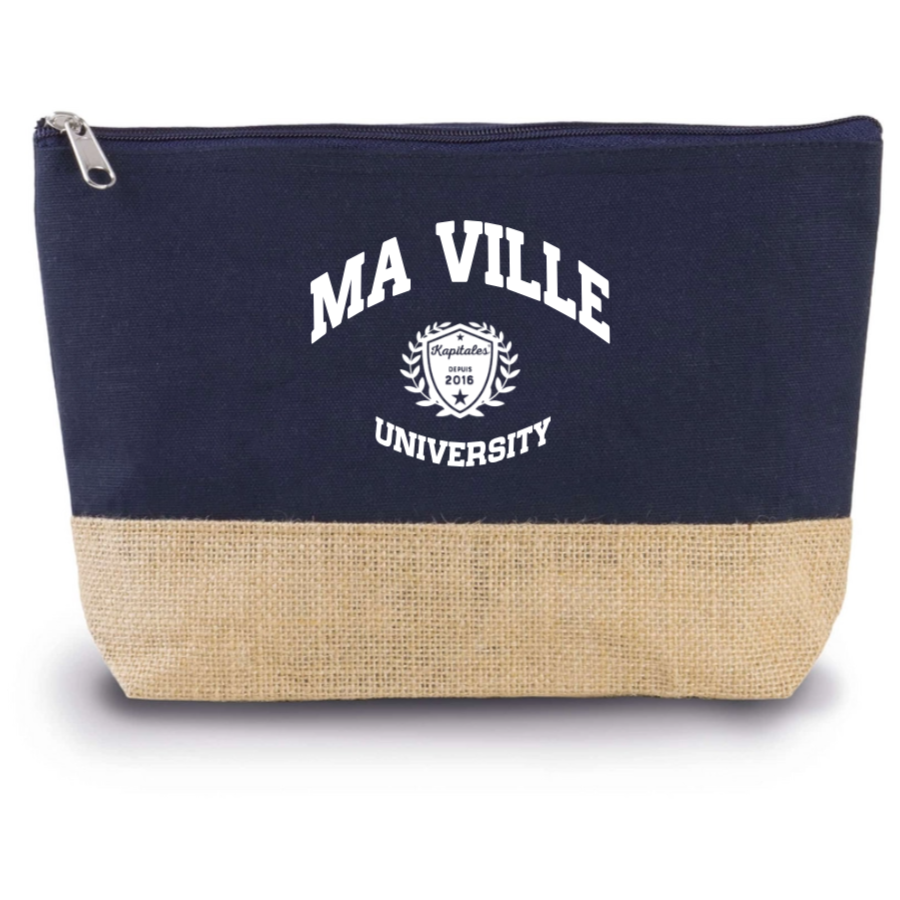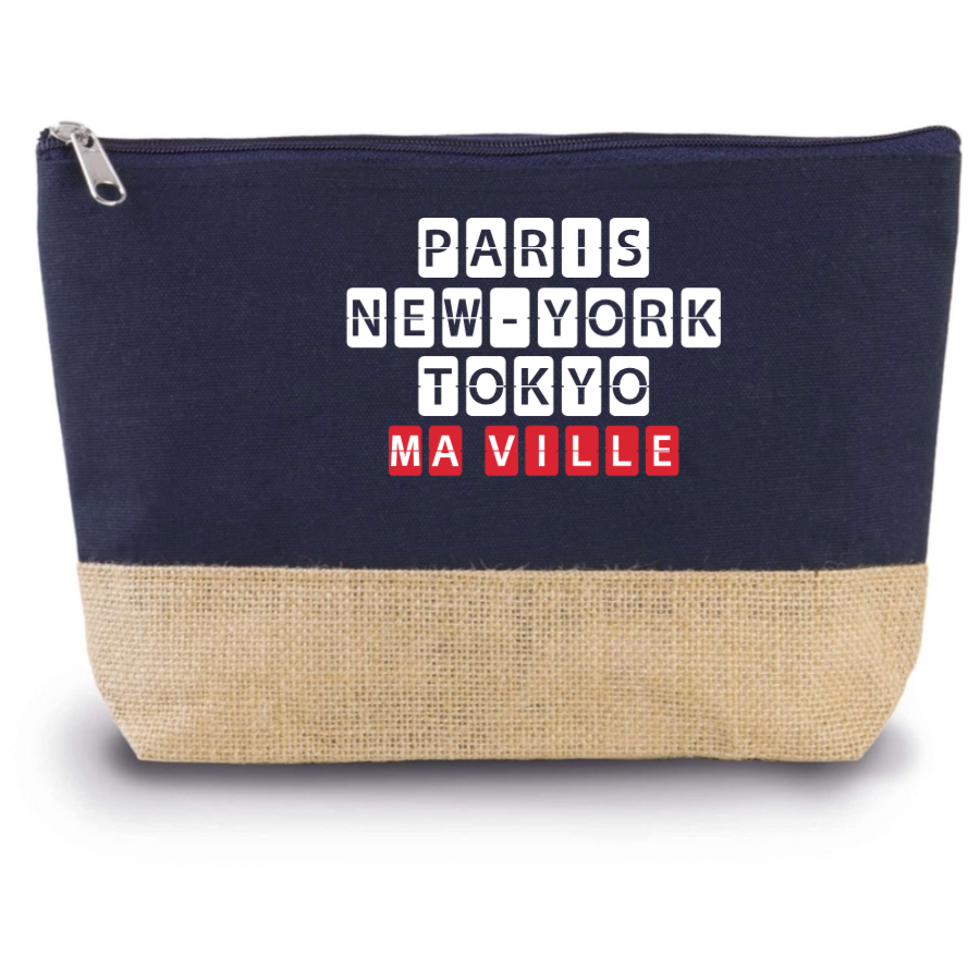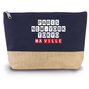 Pratique et élégante, notre Trousse Coton et Jute personnalisée est un indispensable pour organiser vos affaires avec style. En coton et en toile de jute, elle allie durabilité et charme naturel. Personnalisez-la avec le nom de votre ville préférée ou tout autre texte pour en faire un accessoire unique. Elle est dotée d'une fermeture zippée et mesure 27 x 5 x 18 cm, idéale pour ranger vos petits objets du quotidien comme vos produits de beauté ou fournitures de bureau.