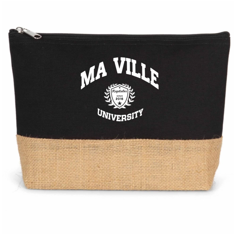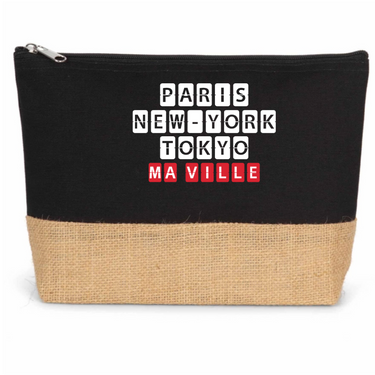 Pratique et élégante, notre Trousse Coton et Jute personnalisée est un indispensable pour organiser vos affaires avec style. En coton et en toile de jute, elle allie durabilité et charme naturel. Personnalisez-la avec le nom de votre ville préférée ou tout autre texte pour en faire un accessoire unique. Elle est dotée d'une fermeture zippée et mesure 27 x 5 x 18 cm, idéale pour ranger vos petits objets du quotidien comme vos produits de beauté ou fournitures de bureau.