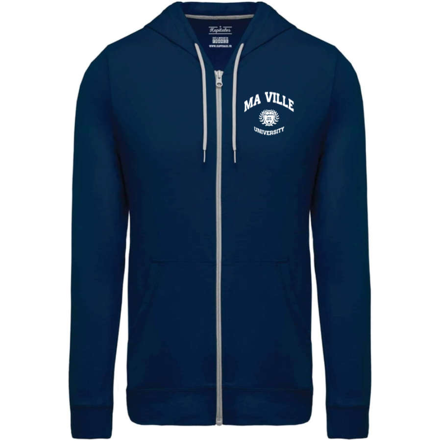 Polyvalente et confortable, cette veste zippée est le compagnon idéal pour vos journées fraîches et vos soirées plus fraîches. Sa coupe unisexe et moderne s'adapte à tous les genres, offrant un confort sans compromis. Parfaitement adapté pour être personnalisé avec le nom de votre ville préférée, elle vous permet de voyager avec votre ville partout où vous allez, tout en soutenant une production locale et responsable.