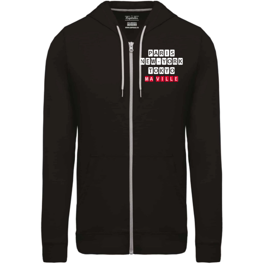 Polyvalente et confortable, cette veste zippée est le compagnon idéal pour vos journées fraîches et vos soirées plus fraîches. Sa coupe unisexe et moderne s'adapte à tous les genres, offrant un confort sans compromis. Parfaitement adapté pour être personnalisé avec le nom de votre ville préférée, elle vous permet de voyager avec votre ville partout où vous allez, tout en soutenant une production locale et responsable.